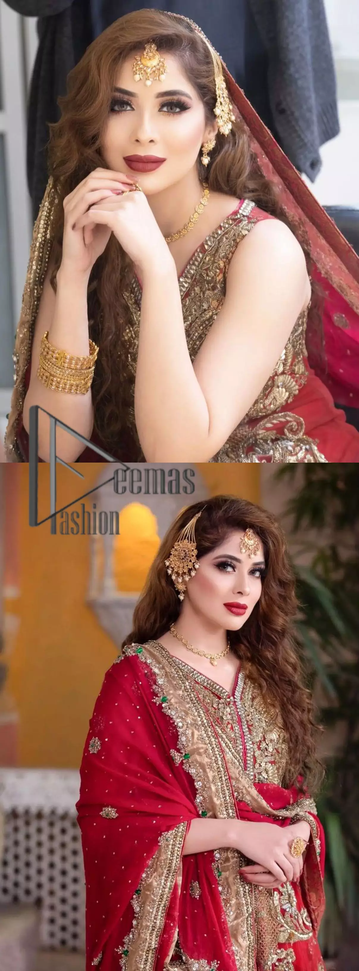 Red Pishwas n Lehenga – Tea Rose Dupatta for Pakistani Bride