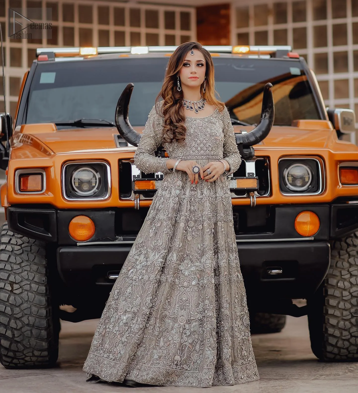 Slate Gray Full Length Maxi Dupatta for Nikah