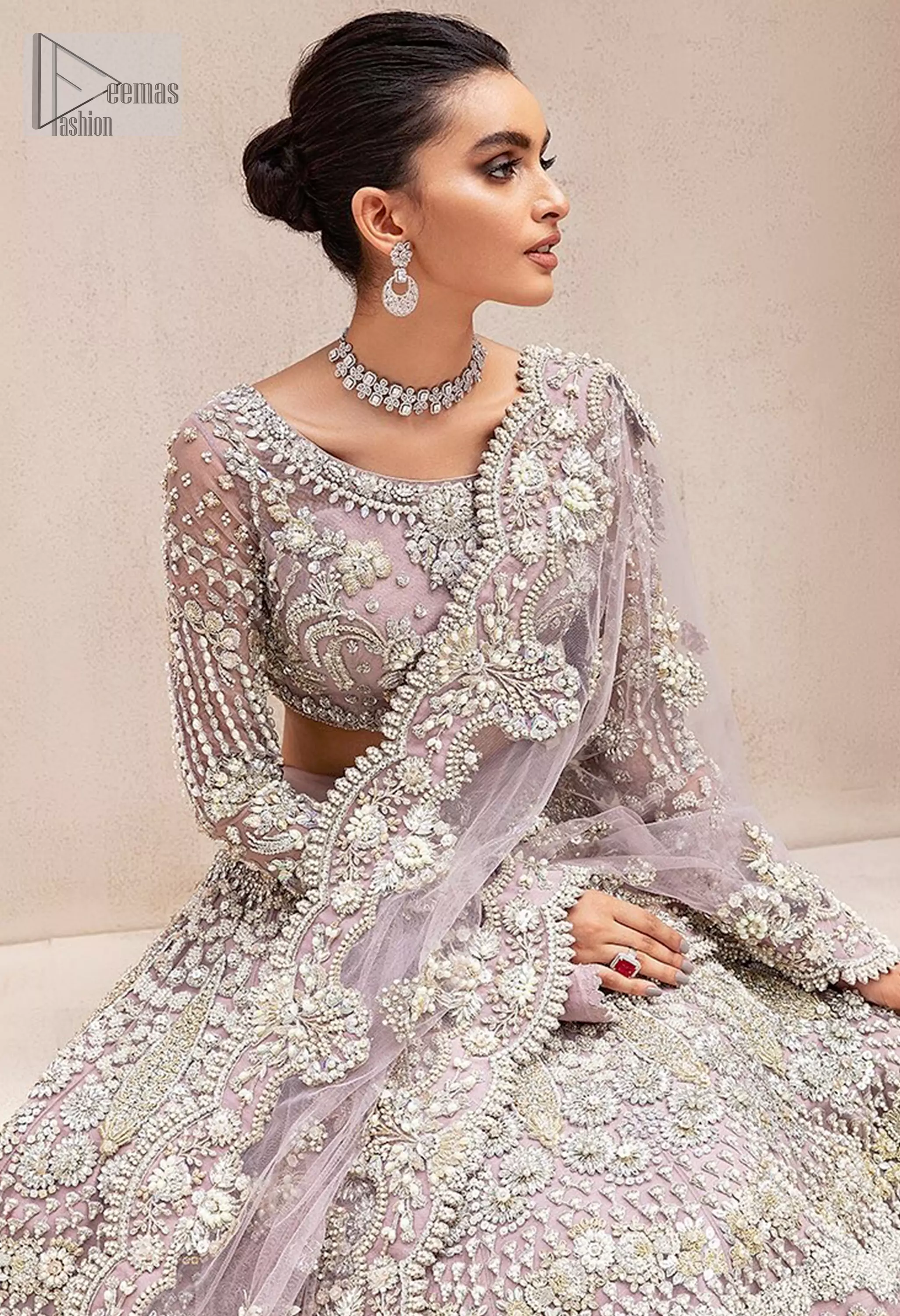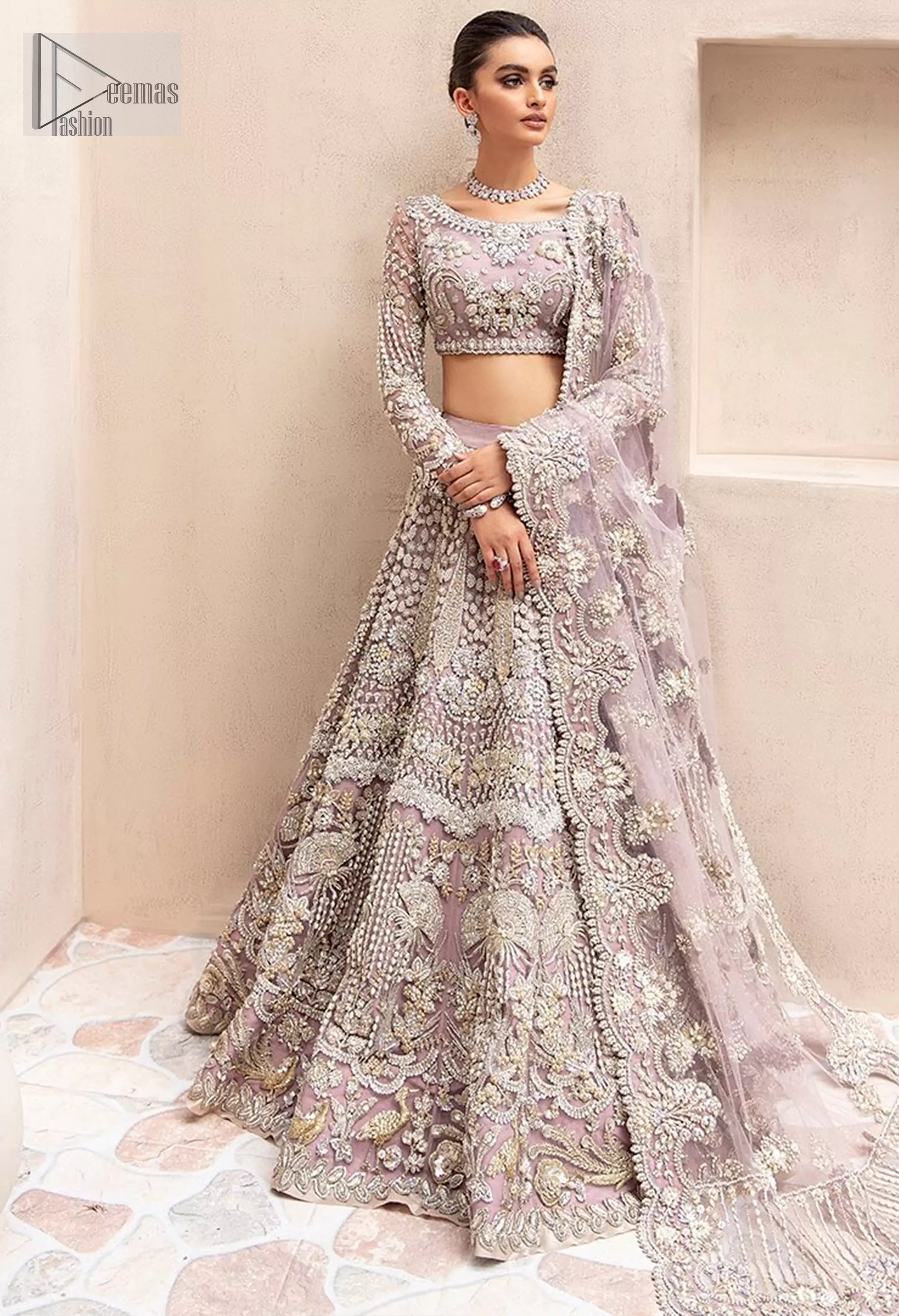 Pastel Pink Lehenga Short Blouse Dupatta for Nikah Bride