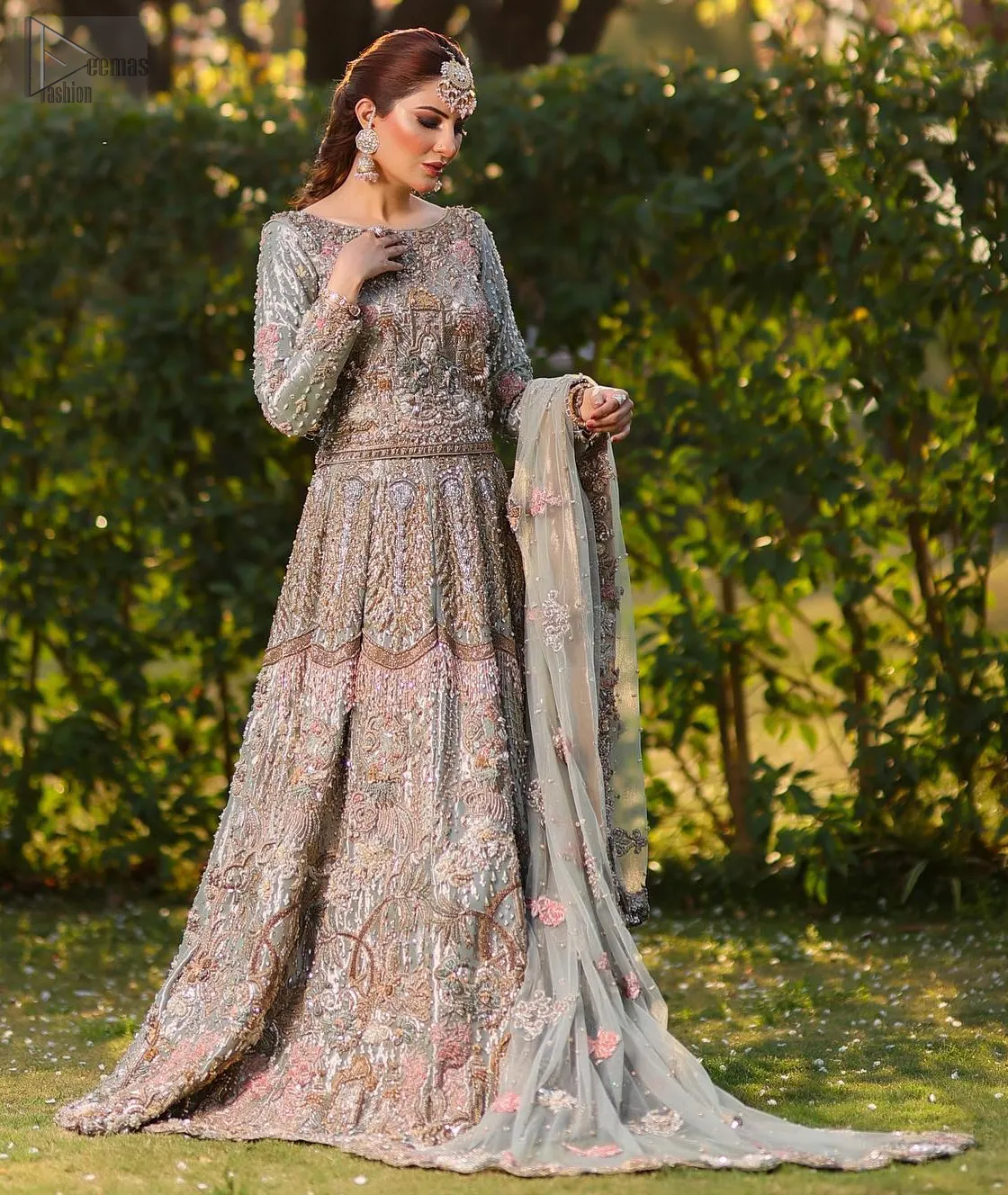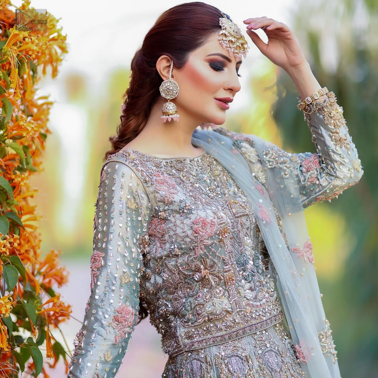 Aqua Lehenga Dupatta – Pink Blouse for Walima